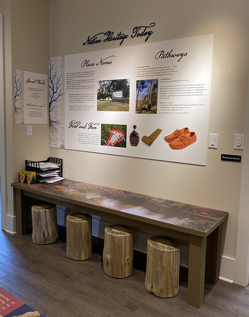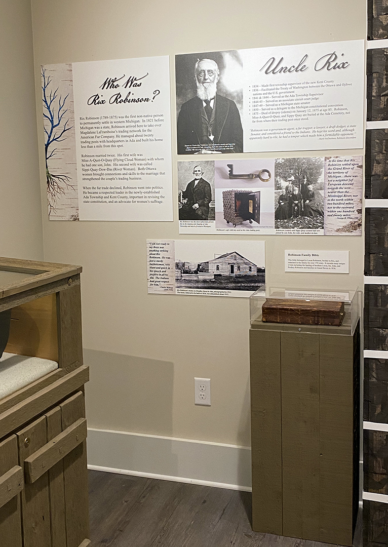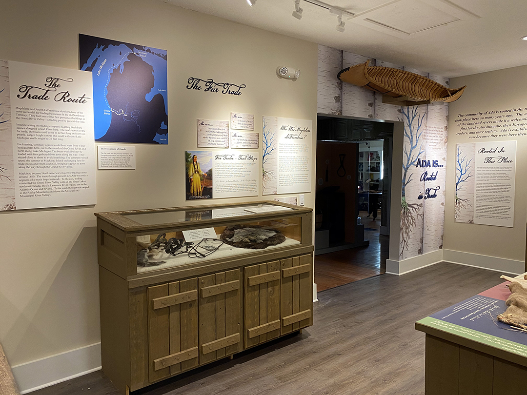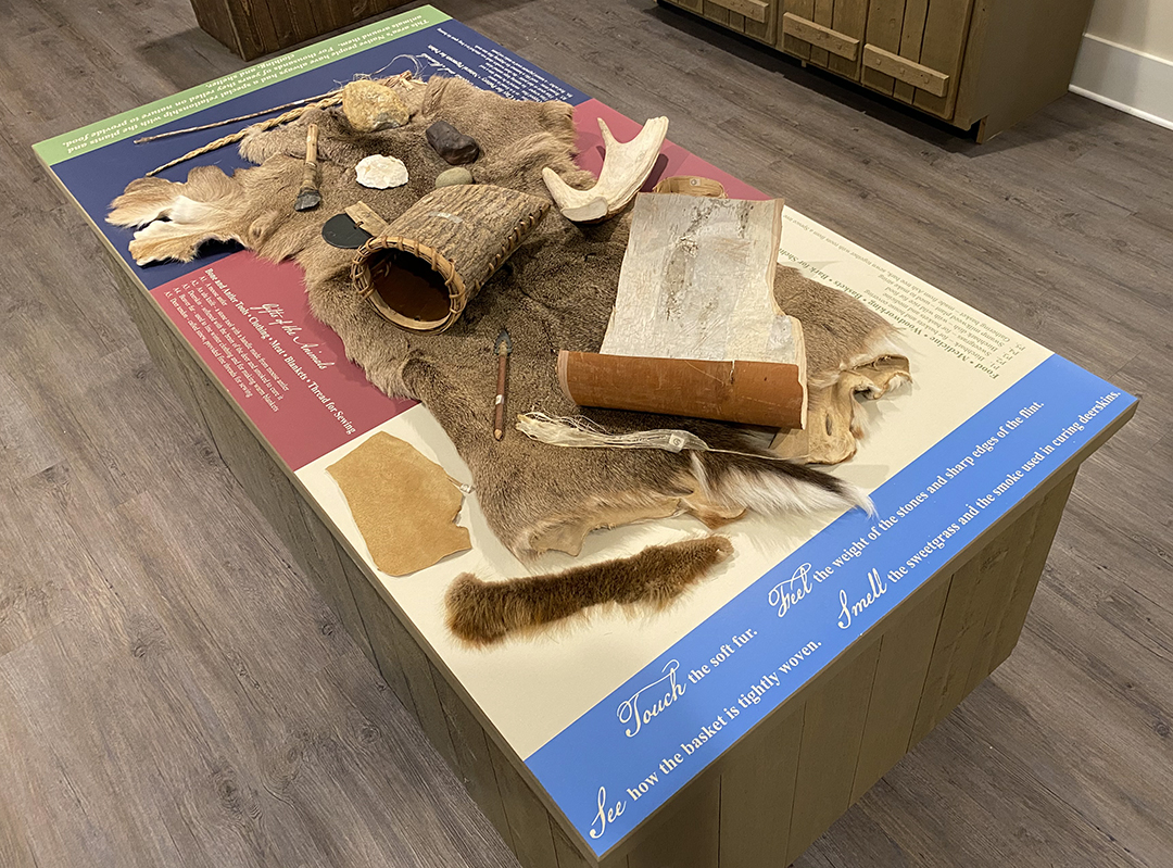 Walk into a small section of an early 1800s trading post in this exhibit and see the variety of goods that may be found there. This exhibit also utilized display cases the museum already owned to display artifacts that tell the story of Native American villages in the area and the development of the fur trade.