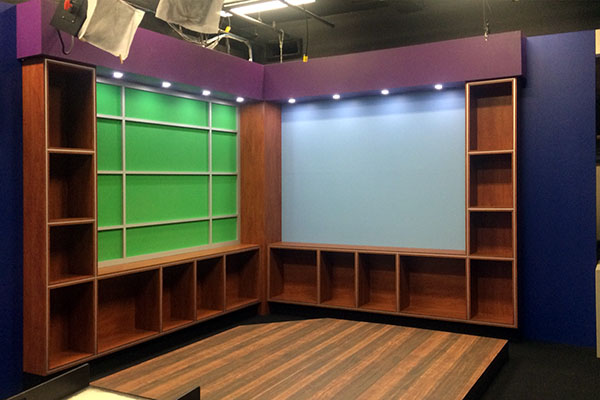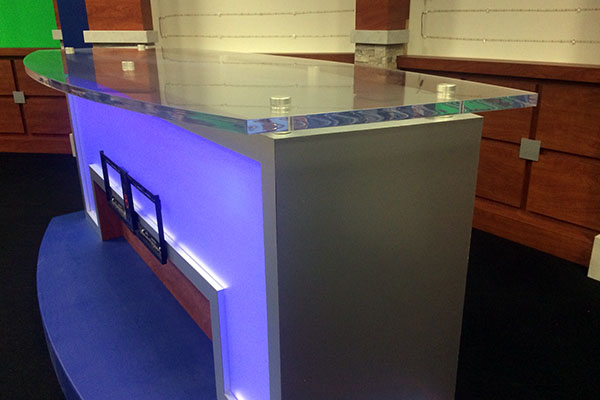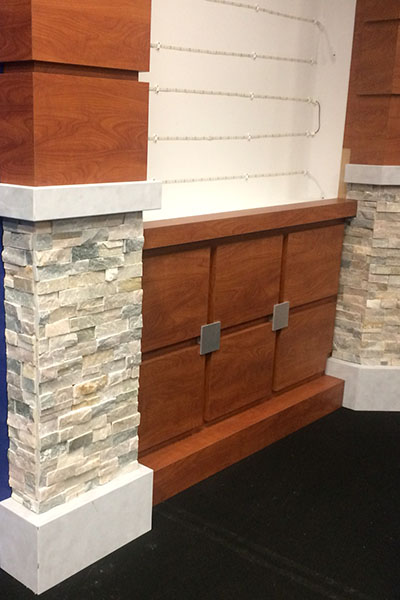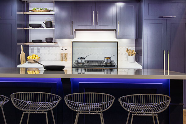 We fabricated kitchen cabinets and counters surrounding an electronic backsplash with touch screen technology developed by GHSP.