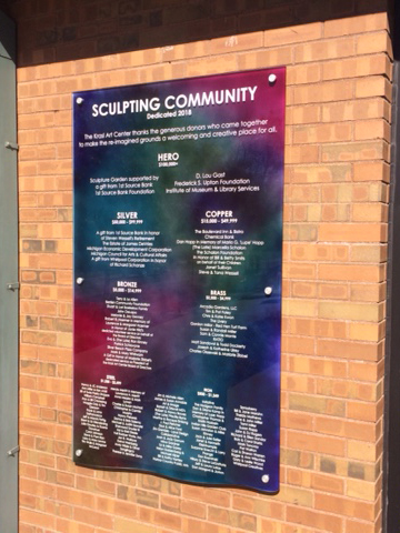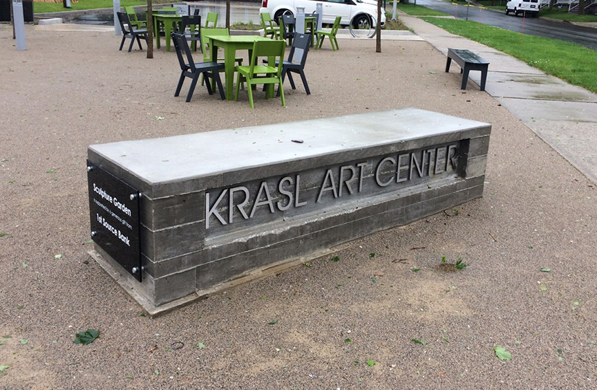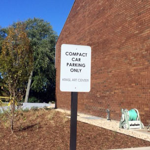 We produced custom signage for the KAC building, parking areas, and other areas of their newly renovated sculpture park area. Signs were made of painted metal and etched glass.