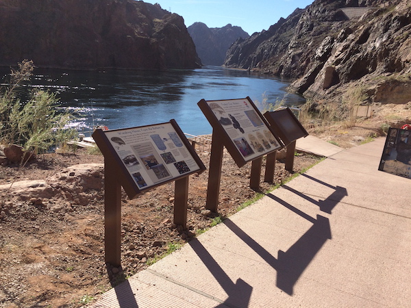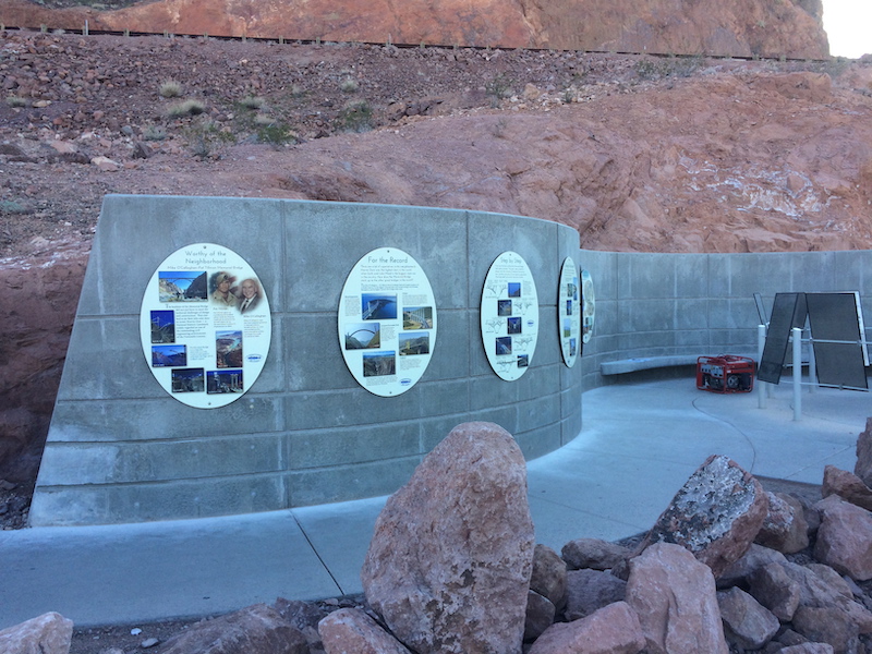High pressure laminate graphic panels with graphics about various parts of the dam and the areas surrounding them mounted at various visitor locations all around the dam.crops are all features of these exhibits.