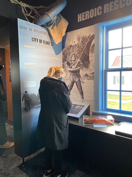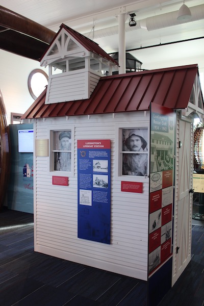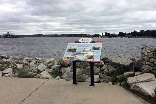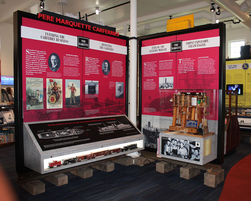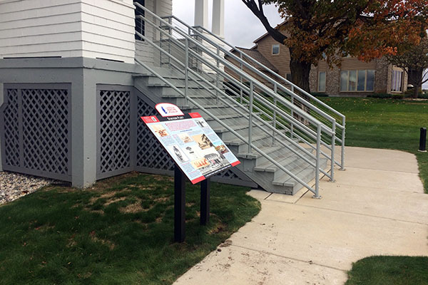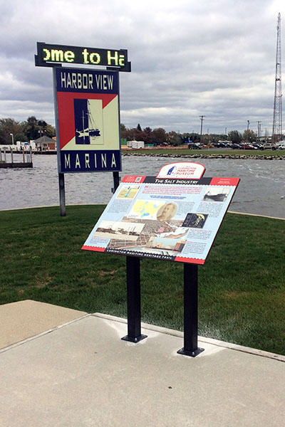 Weather-resistant graphic panels about landmarks and local history are mounted throughout the downtown Ludington area.