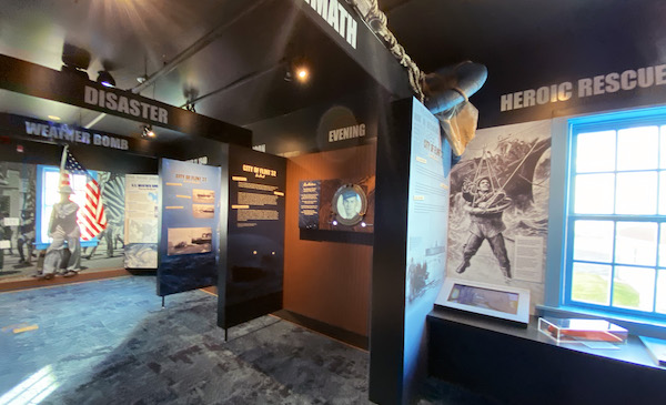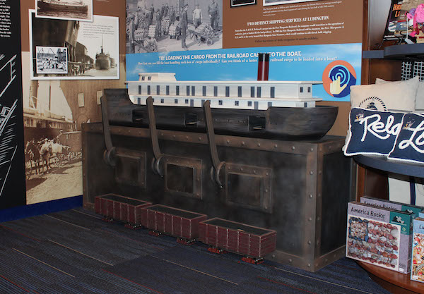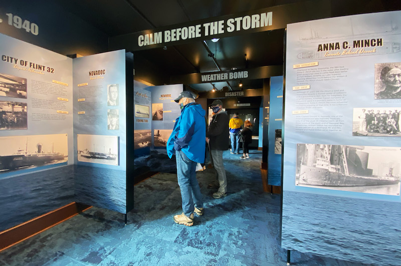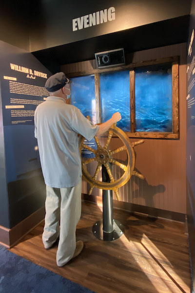 In addition to a variety of graphics, this exhibit also features a walk-in submarine with video and a moveable nautical wheel. Other videos in the exhibit give more in-depth experiences for visitors.